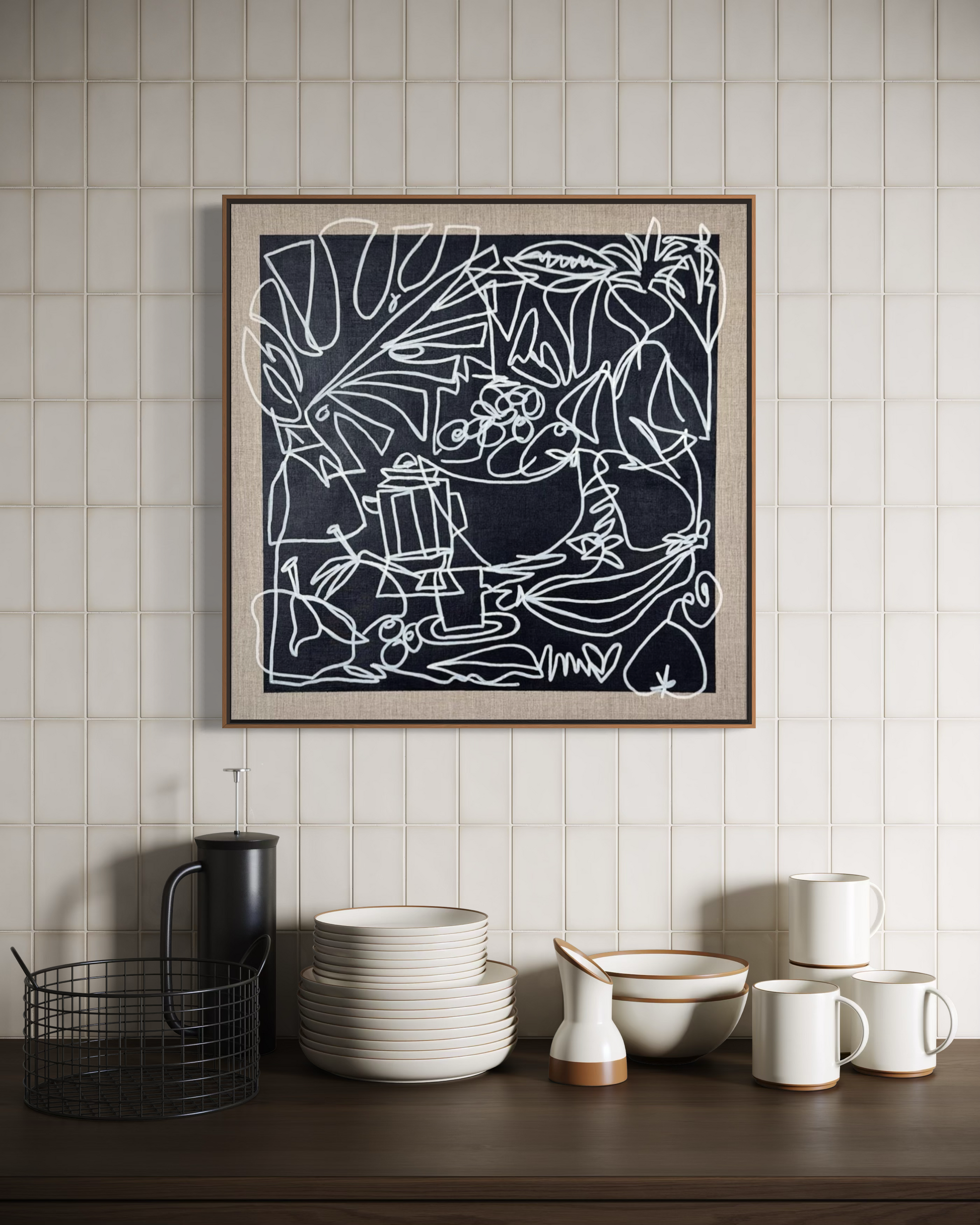 - Raw Linen + Midnight Blue Base + White Lines