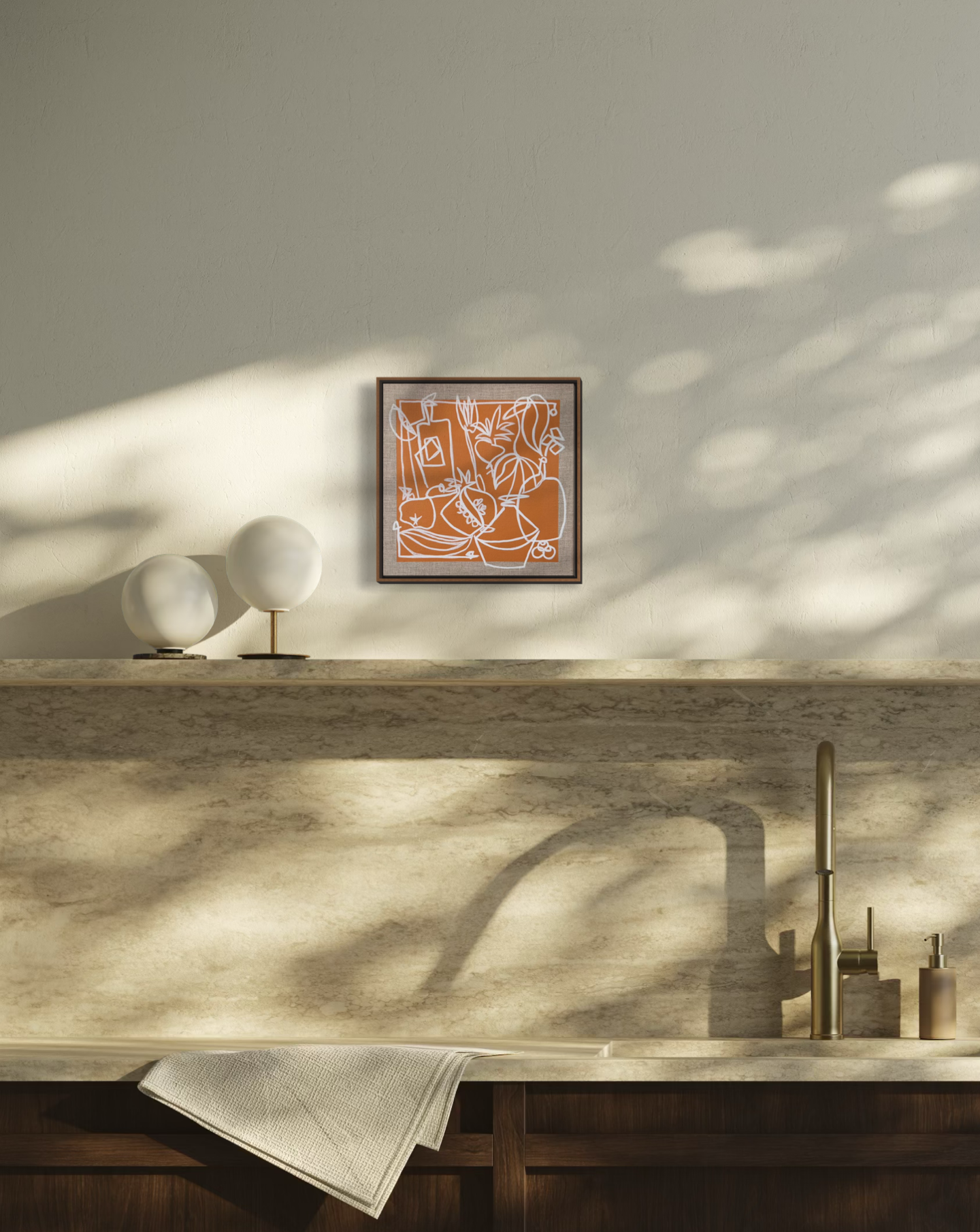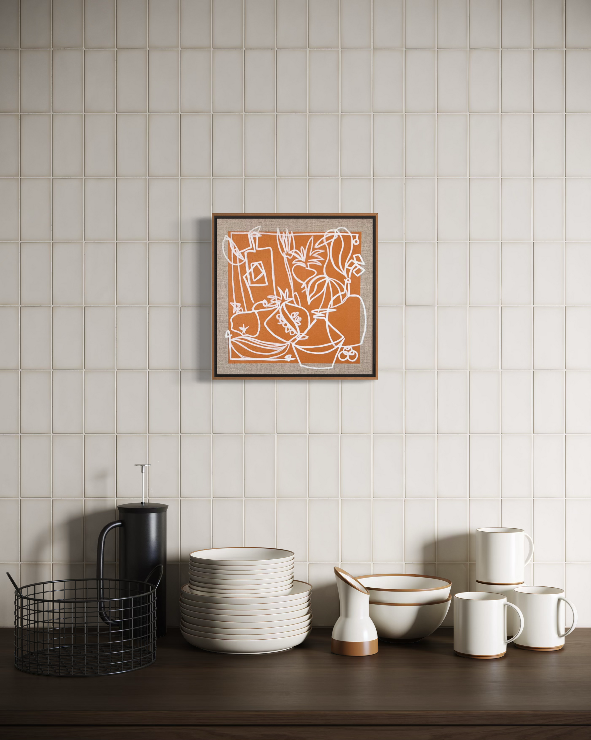 - Raw Linen + Burnt Orange Base + White Lines